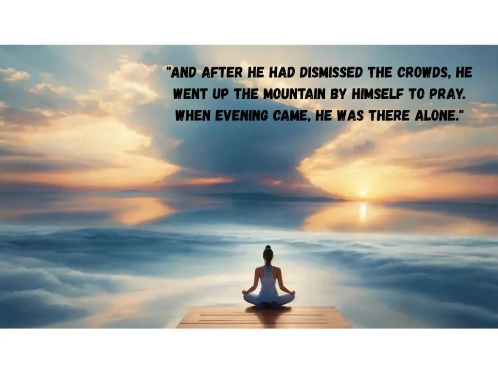 “And after he had dismissed the crowds, he went up the mountain by himself to pray. When evening came, he was there alone.”