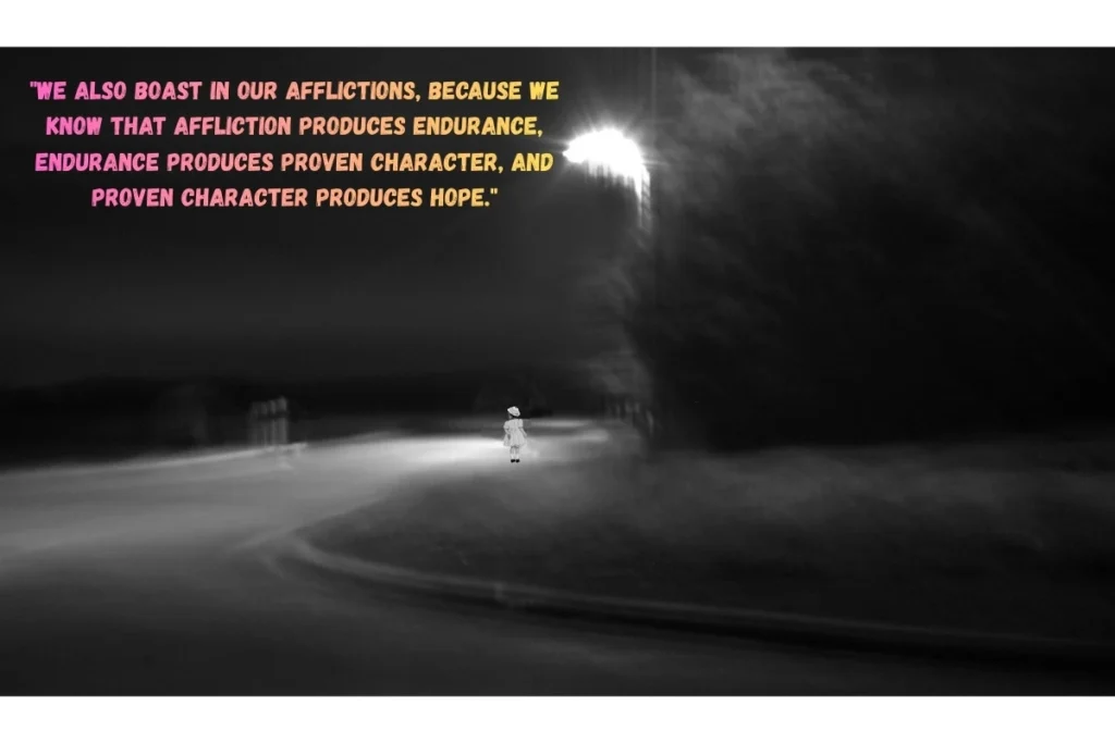“We also boast in our afflictions, because we know that affliction produces endurance, endurance produces proven character, and proven character produces hope.”