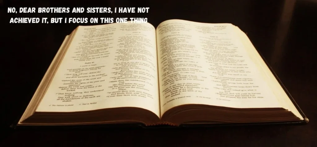 “No, dear brothers and sisters, I have not achieved it, but I focus on this one thing: Forgetting the past and looking forward to what lies ahead, I press on to reach the end of the race and receive the heavenly prize for which God, through Christ Jesus, is calling us.”