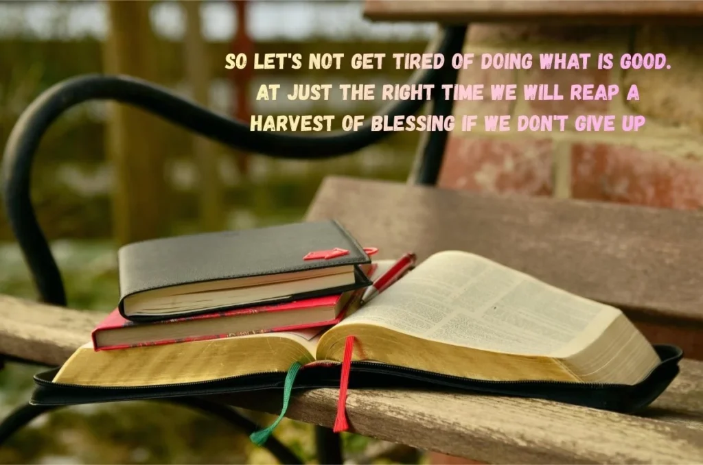 “So let’s not get tired of doing what is good. At just the right time we will reap a harvest of blessing if we don’t give up.”