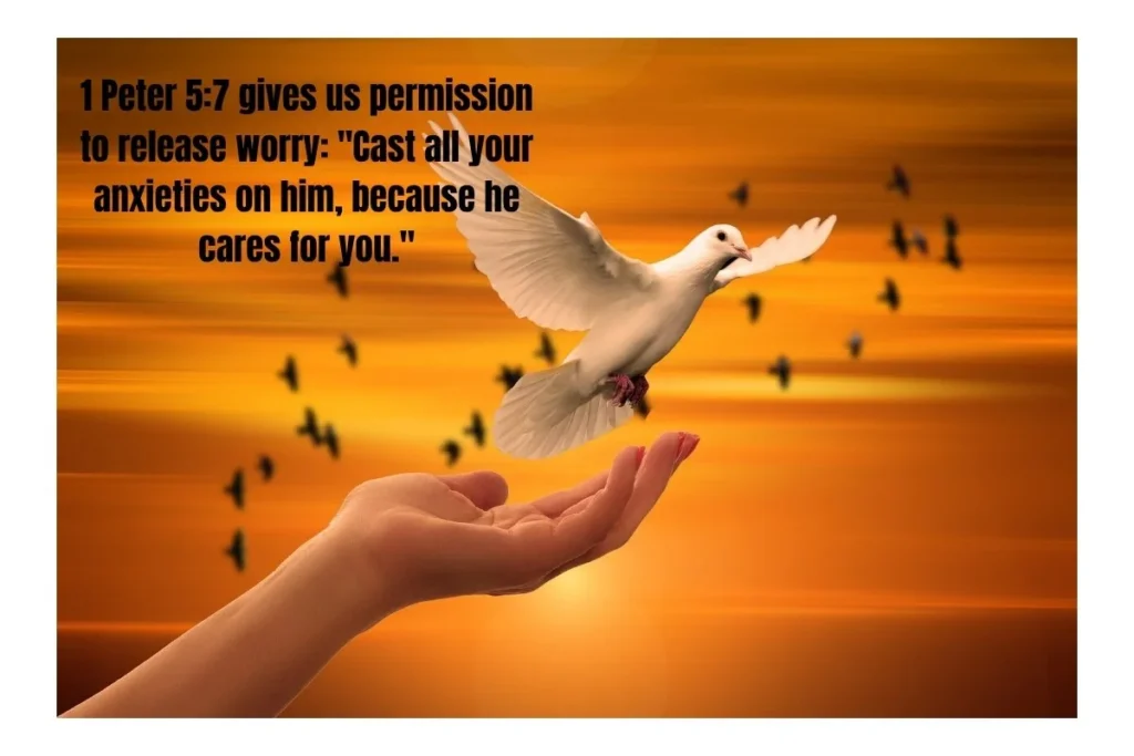 1 Peter 5:7 gives us permission to release worry: “Cast all your anxieties on him, because he cares for you.”