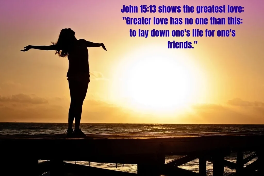 John 15:13 shows the greatest love: “Greater love has no one than this: to lay down one’s life for one’s friends.”