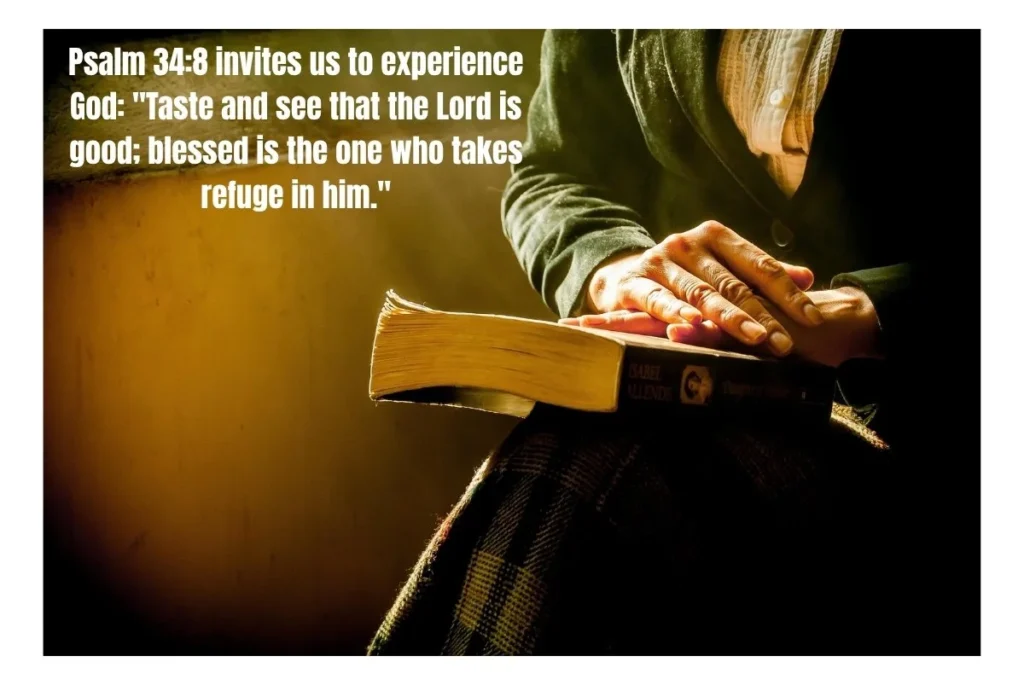 Psalm 34:8 invites us to experience God: “Taste and see that the Lord is good; blessed is the one who takes refuge in him.”