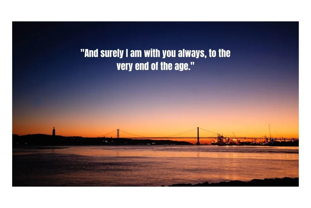 Reflection:These are the words of Jesus Christ Himself. This is not a temporary promise. Jesus says He is with you “always” and “to the very end of the age.” This means faith in difficult times is never blind faith. Christ is actively present. The peace of Christ comes from knowing He walks beside you. This verse assures us of permanent companionship. You are alone but not forsaken.