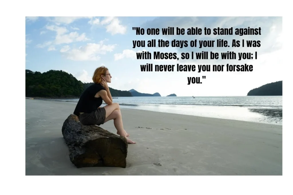 “No one will be able to stand against you all the days of your life. As I was with Moses, so I will be with you; I will never leave you nor forsake you.”