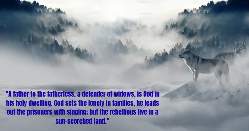 Reflection:God has a special heart for those who are alone. He is described as “a father to the fatherless.” This shows God’s care and compassion for vulnerable people. The phrase “God sets the lonely in families” is powerful. God doesn’t want you to stay in loneliness. He works to bring companionship and community into your life. He provides refuge and shelter in God for those who need it most.