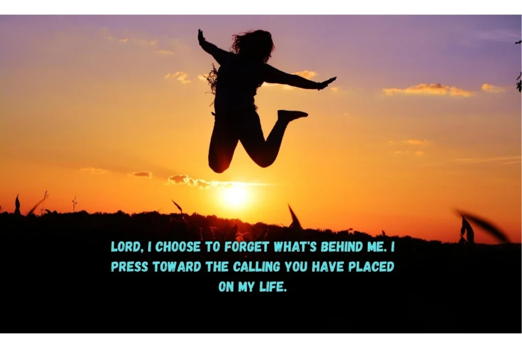 “Lord, I choose to forget what’s behind me. I press toward the calling You have placed on my life. Help me strain forward with faith and courage. I trust Your plans for me. Amen.”